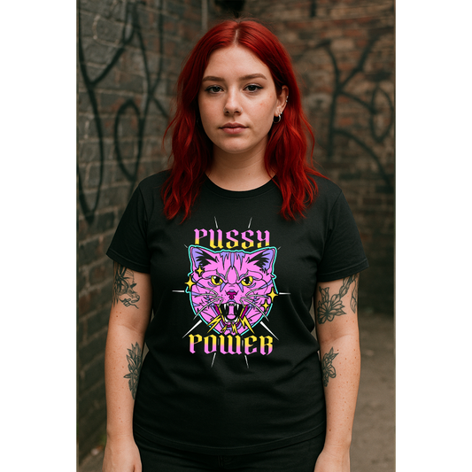 Power Bold Retro Cat Design Tee