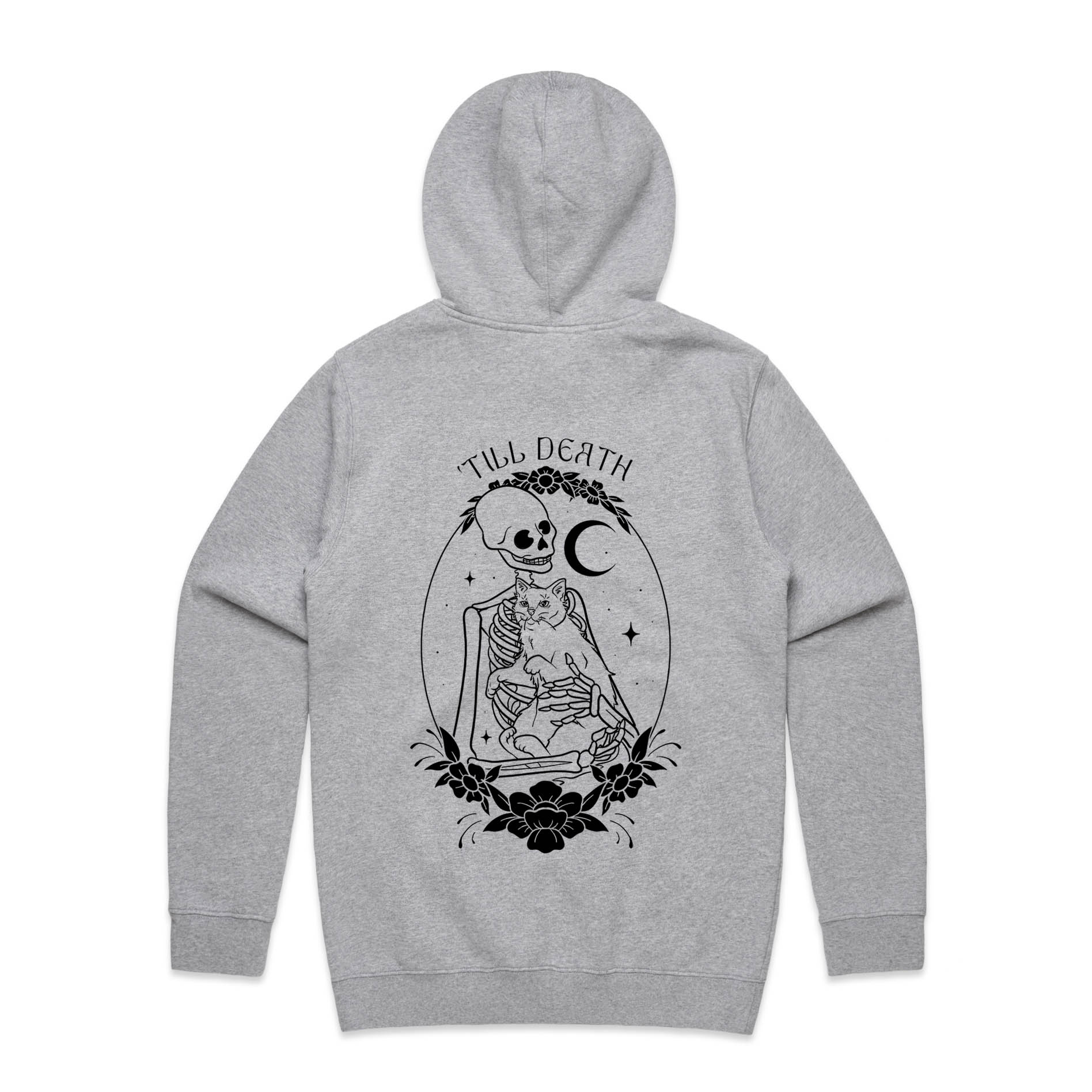 'Till Death – Gothic Skeleton & Cat Graphic Hoodie
